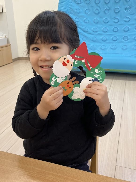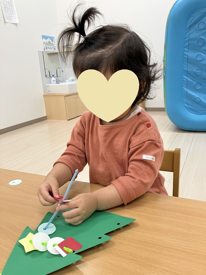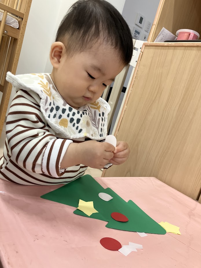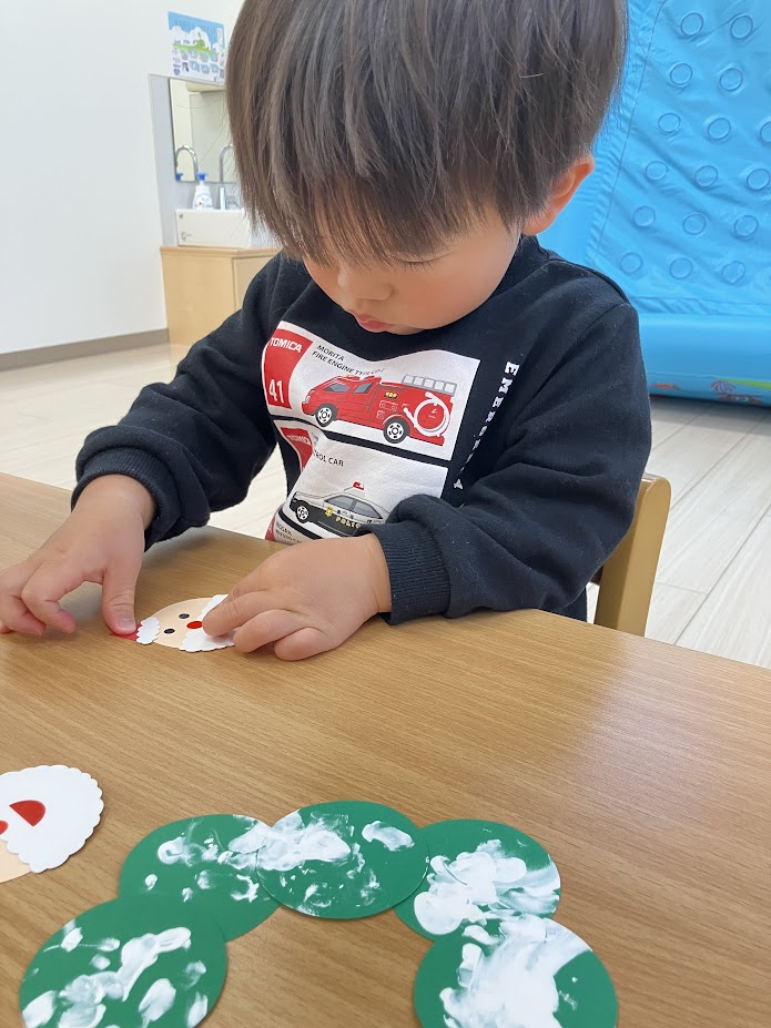 1・2歳児はサンタさんやトナカイさんの顔に小さなシールを貼るところも集中して頑張りましたよ✨