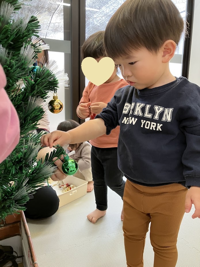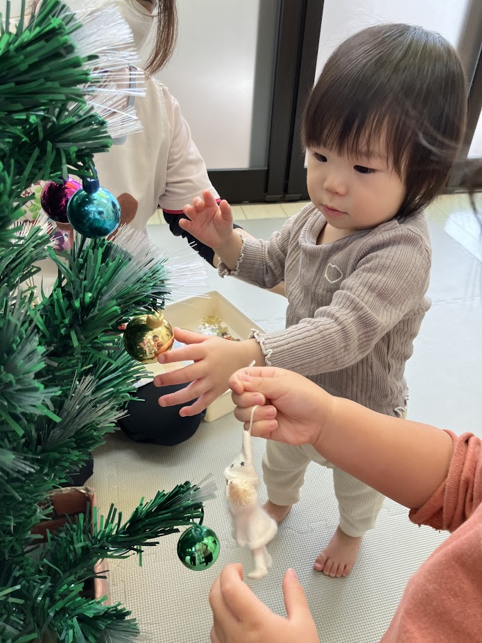 そして、園のクリスマスツリーもみんなで飾りつけ🎄