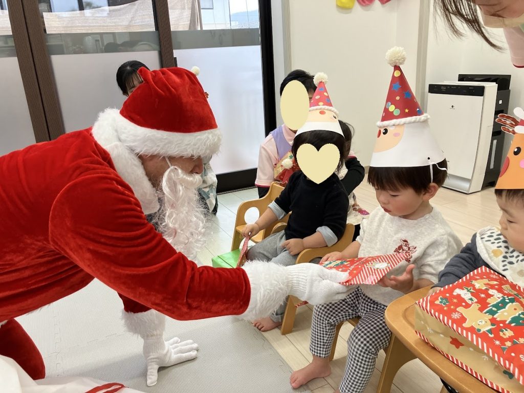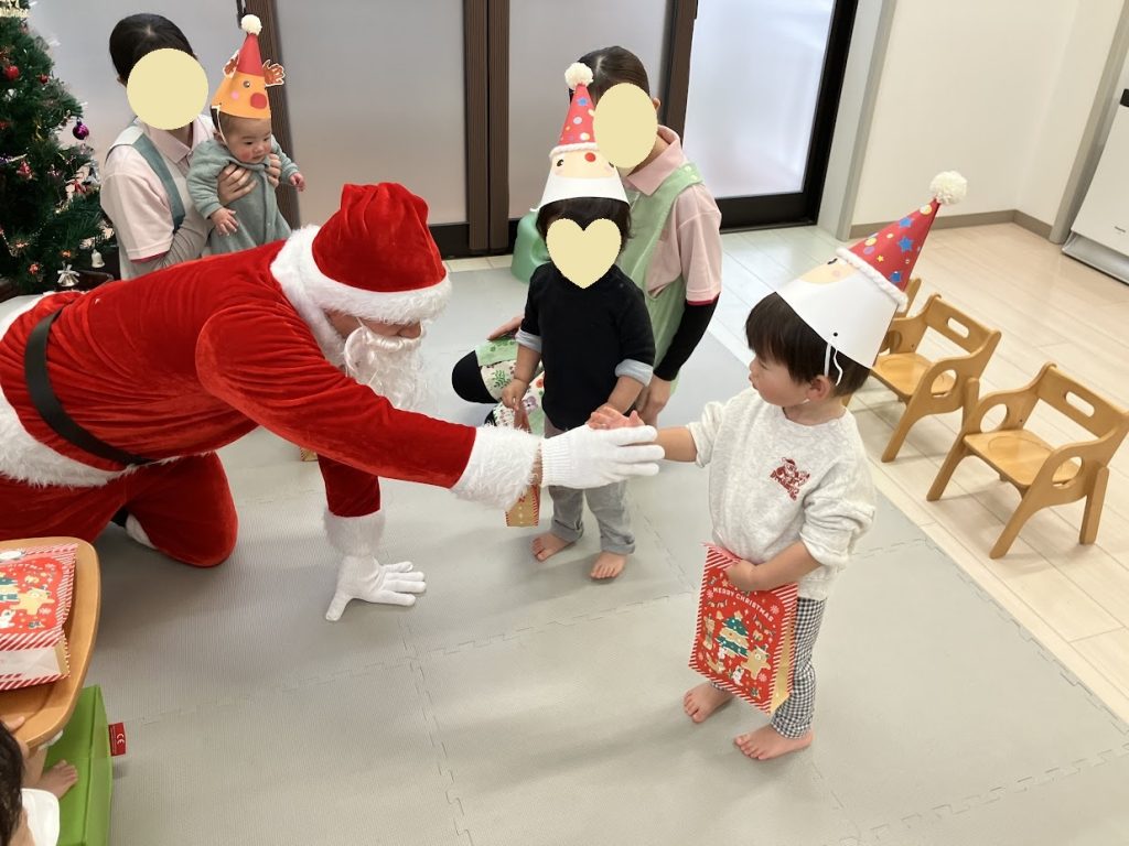 サンタさんと握手をして、一人ずつプレゼントをもらいました🎁
