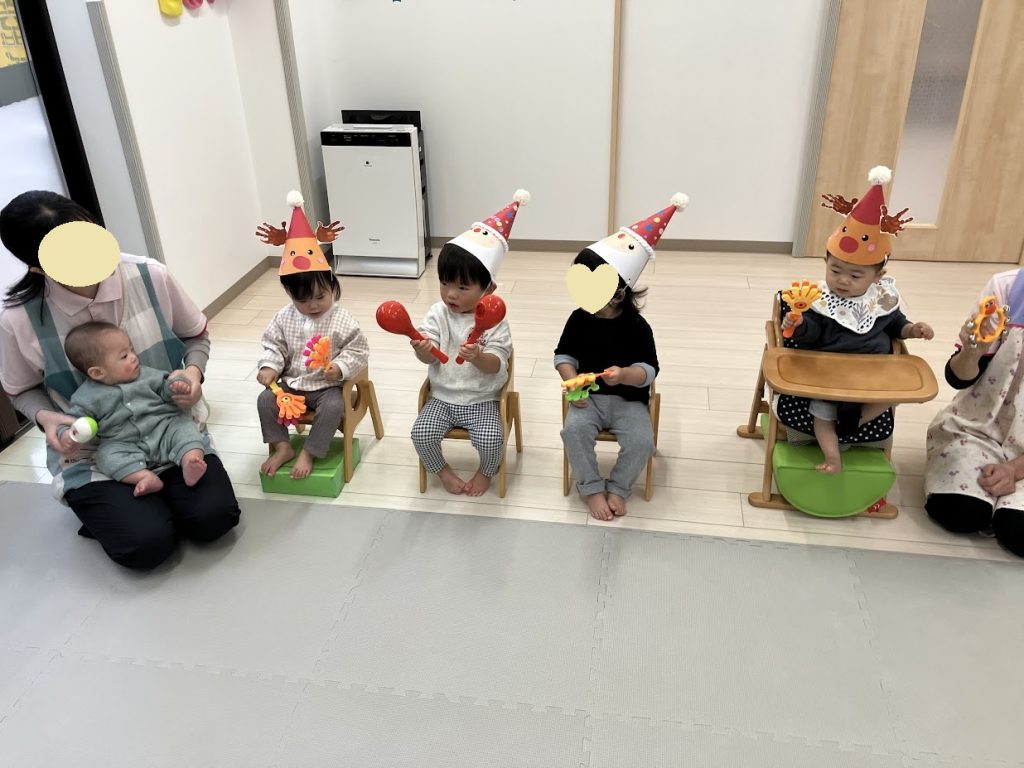 マラカスや鈴の楽しい音が保育室に広がりました🤗