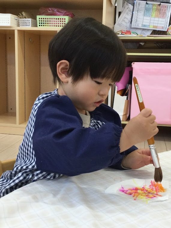 水で広がる色にびっくり!「すごいね!」「かわいいね~!」とニコニコでした😆