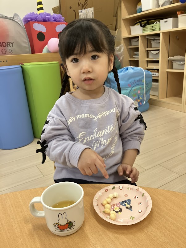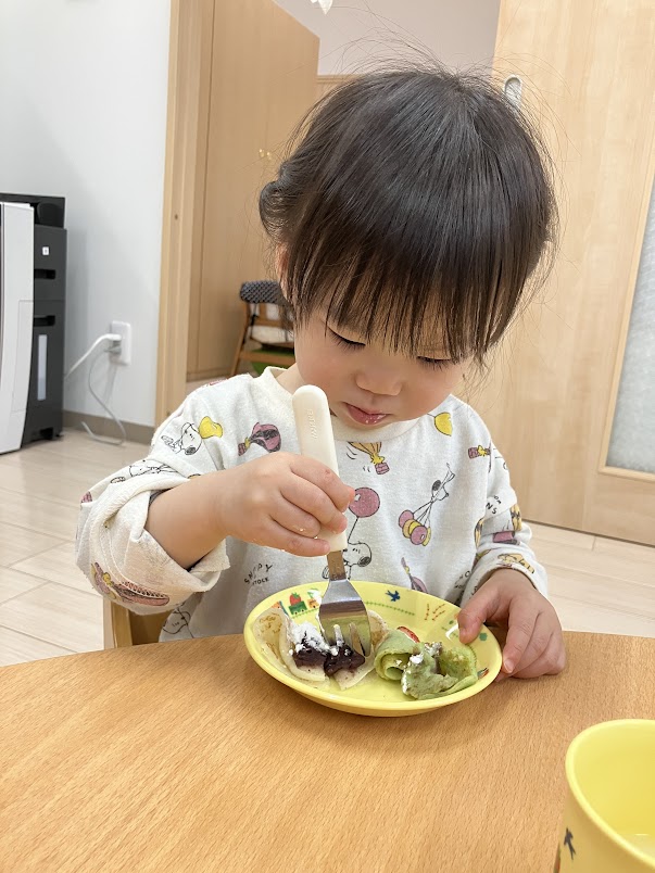 「みて!おひなさまになってる~!」「甘いね~!」と言いながらスタッフに教えてくれたり、友だちと話したりしながら楽しんで食べました😋