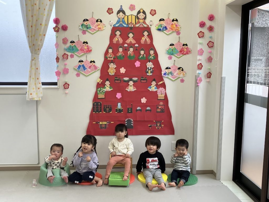 玄関の壁面をひなまつりに変えたりしながら、ひなまつり会があることを伝えていき、当日を楽しみにしていた子どもたち🎵