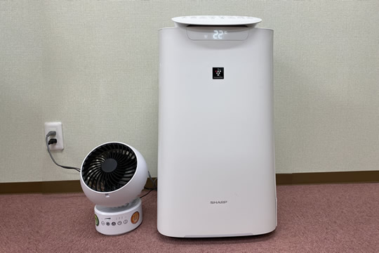 そして、サーキュレーターを使った効率のよい換気を行っております。また、1時間に1度窓を開けて空気の入替をしています