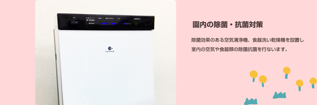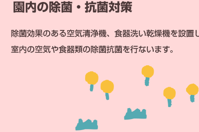 ジョイナス保育園では新型コロナウイルス感染予防の為に様々な感染予防に取り組んでいます。